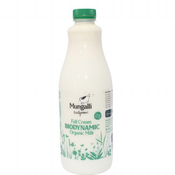 Mungalli Creek Dairy Full Cream Milk 1.5Lt. It’s unhomogenised so the cream rises naturally to the top. Rich and Creamy totally pure.